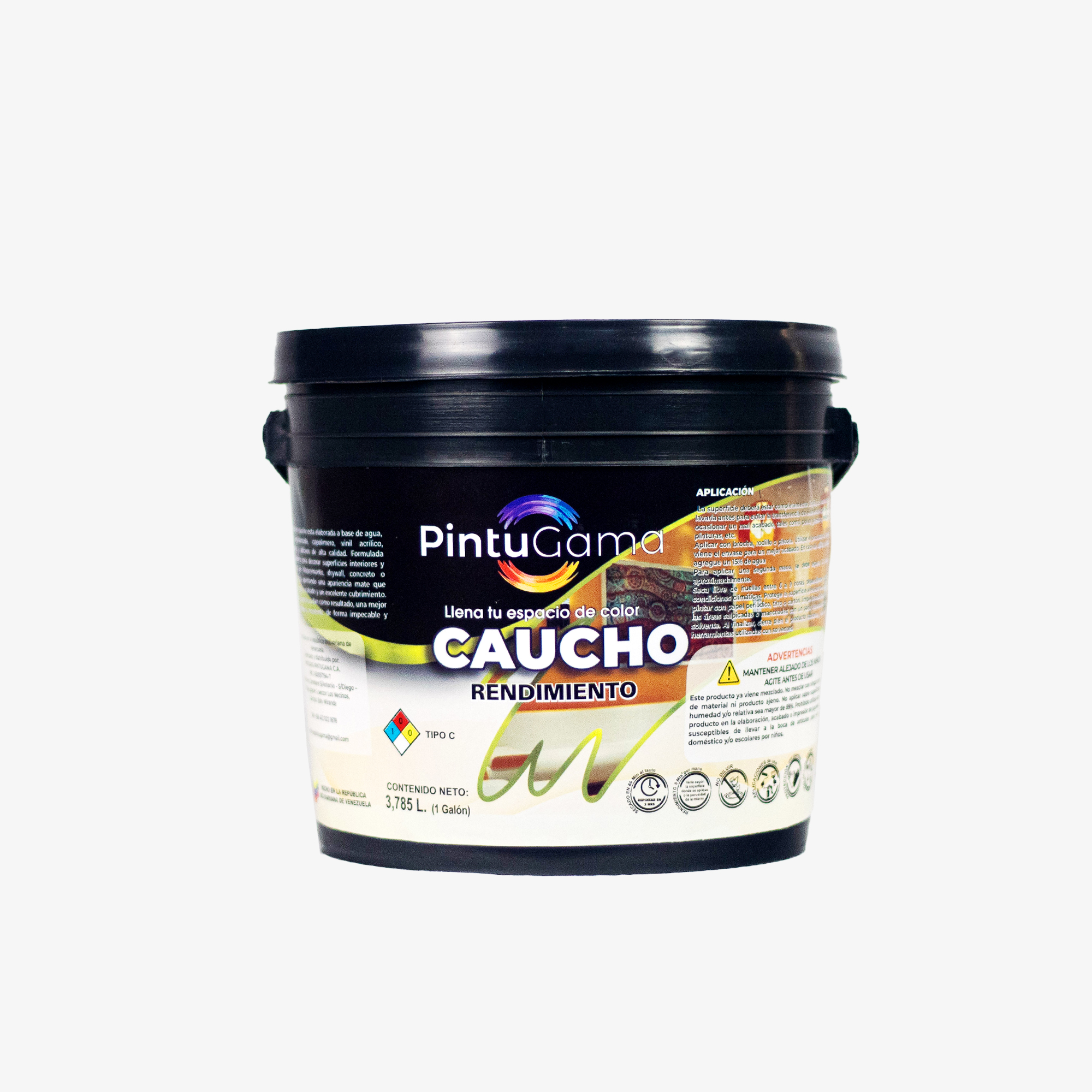Peso aproximado de 5 kg por galón. Se distribuye en bultos de 4 galones en envases plásticos resistentes.